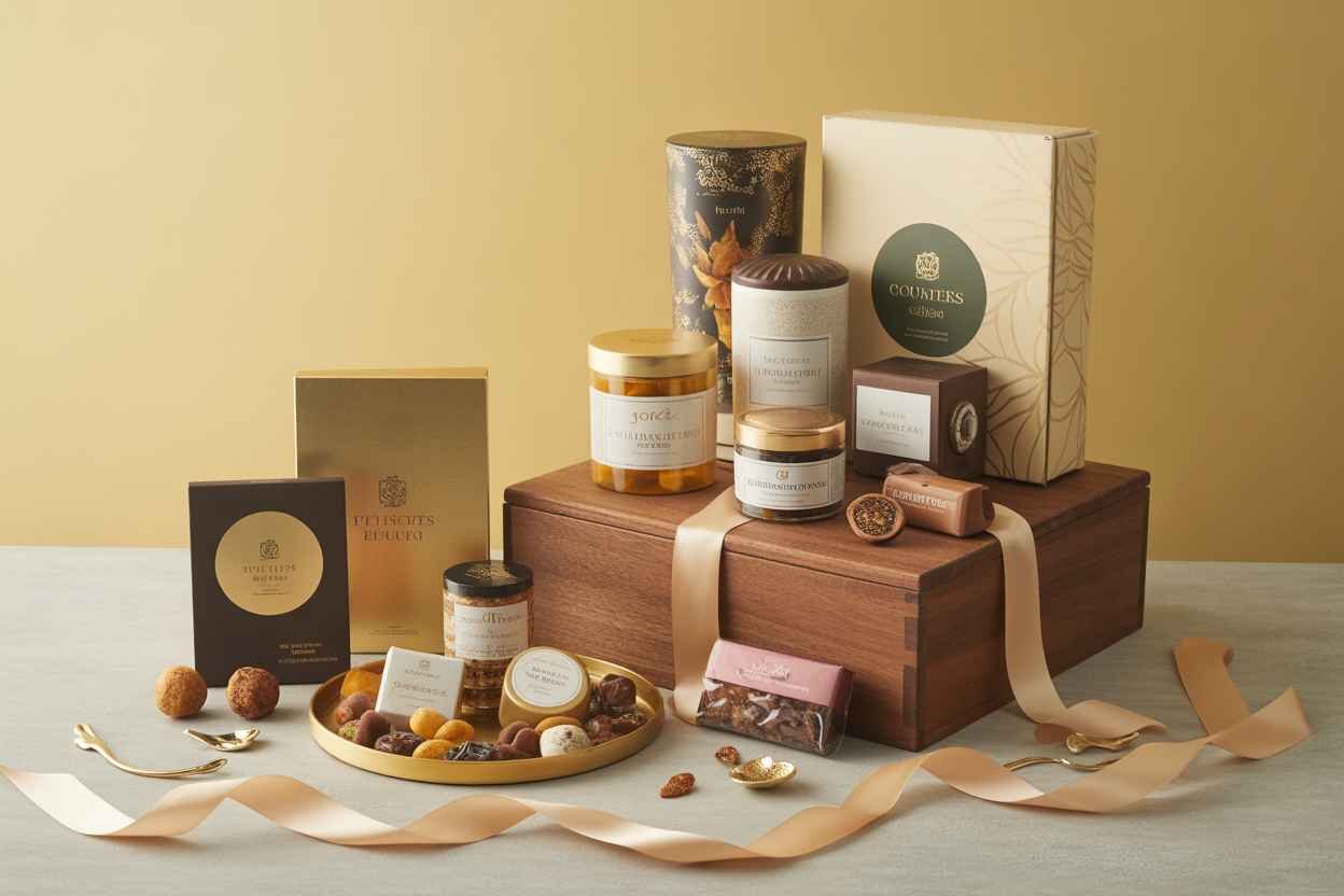Dry fruits • Chocolates • Wellness kits • Luxury packaging